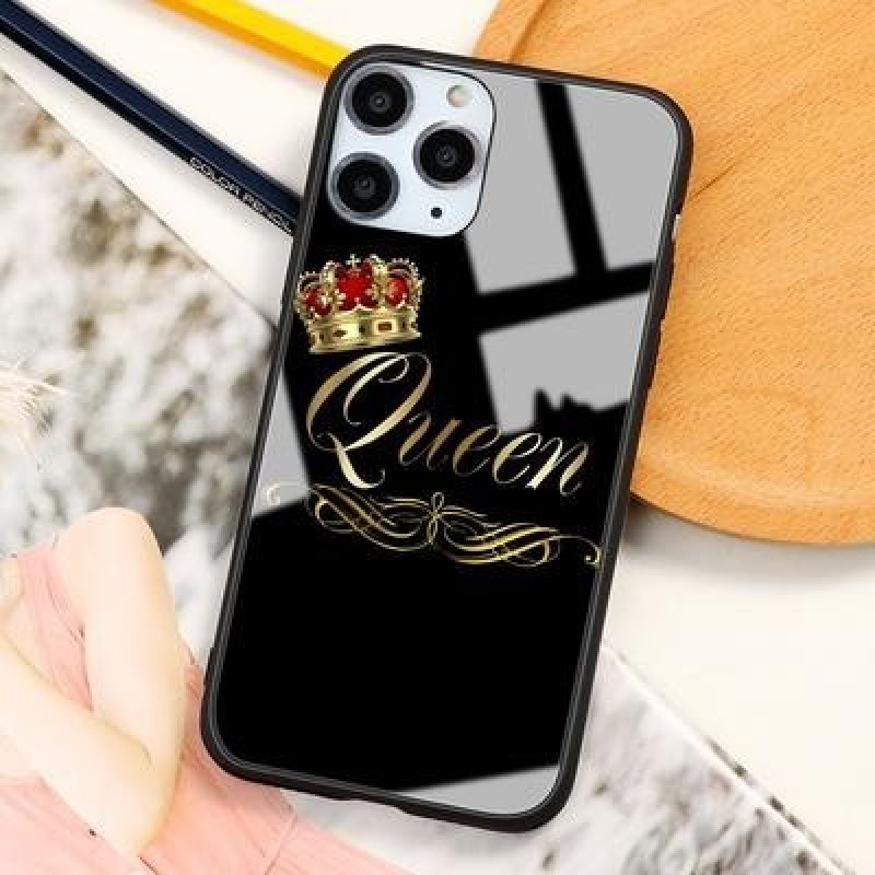 Пара Королева Король Корона Бриллиант Қатты шыны Мобильді телефонға арналған қаптама iPhone 13 12 11