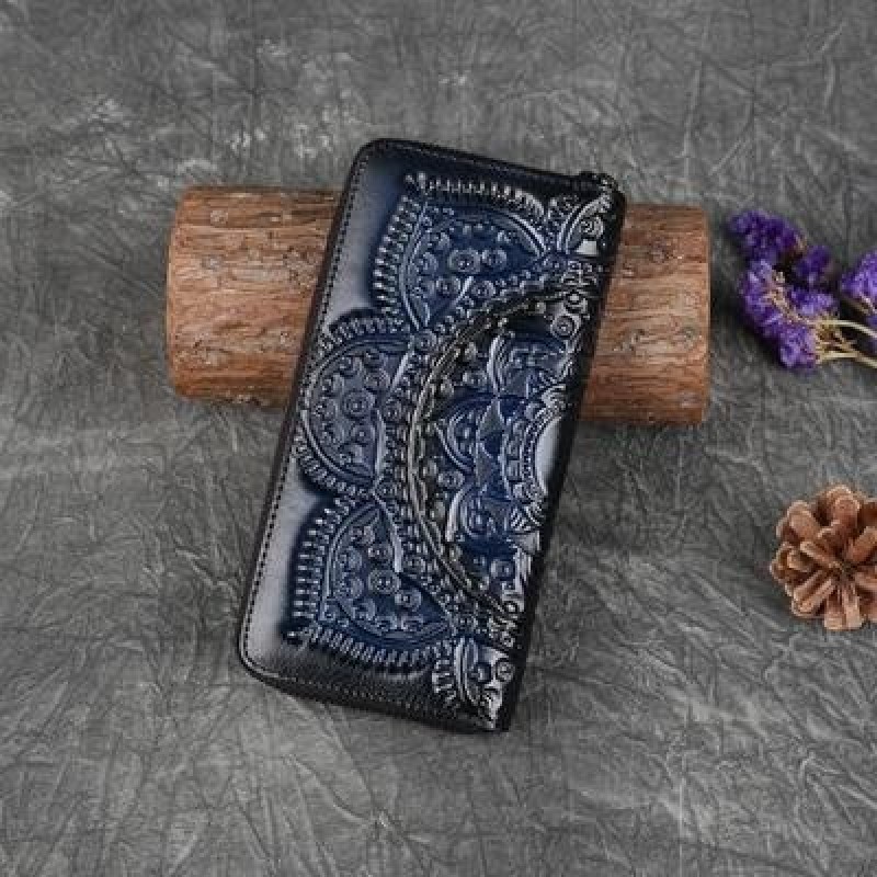 Ретро әйелдерге арналған әмиян, ұзын сөмке, табиғи сиыр терісі, қолмен жасалған, тиснеленген гүлді ә