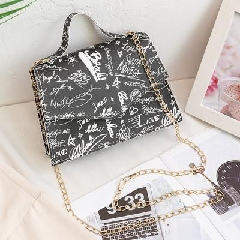 Басылған сөмке, әйелдер сөмкесі, корей стилі, әйелдерге арналған тізбекті иық сөмкесі, мессенджер сө