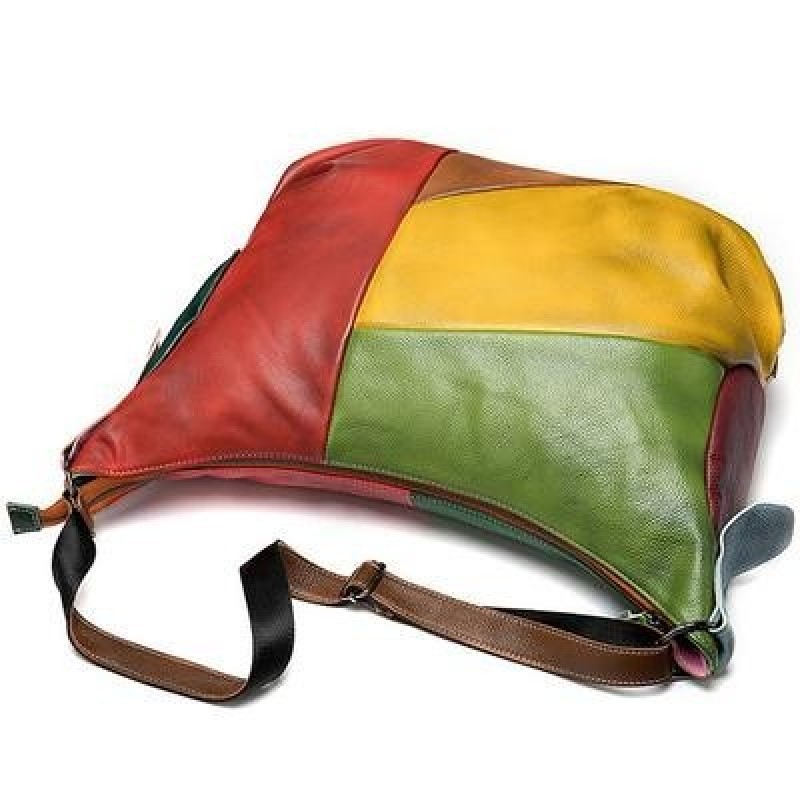Шынайы тері әйелдерге арналған Хобо сөмкесі, қолмен жасалған, винтаж стилі, патчворк, шынайы тері, с