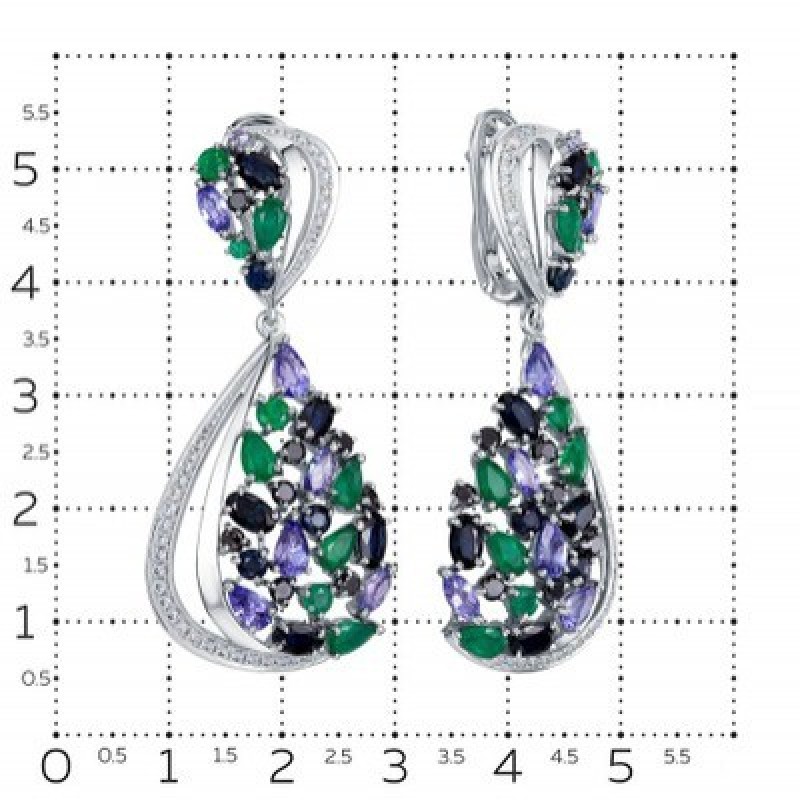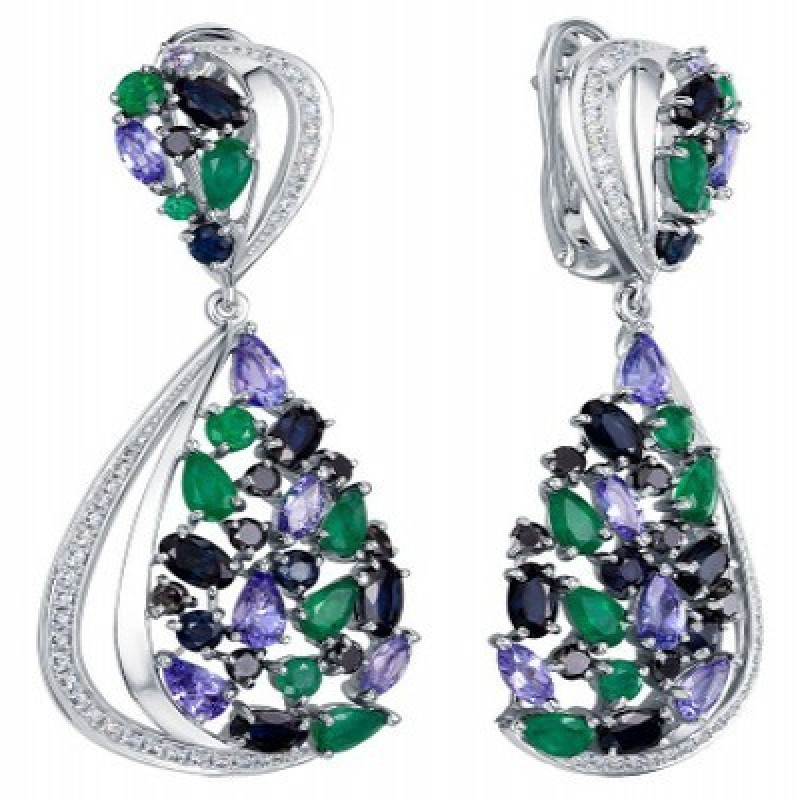 Ақ алтын сырғалар, Vesna jewelry 21177-251-203-00 кулондарымен, изумрудтармен, сапфирлермен, танзани ₮59259800.0 |