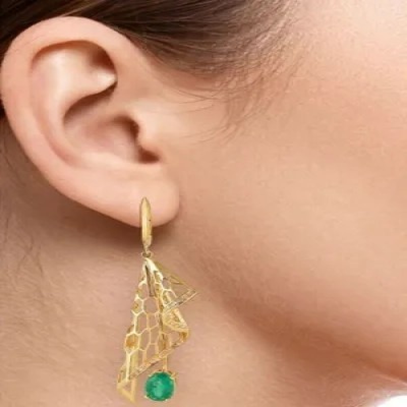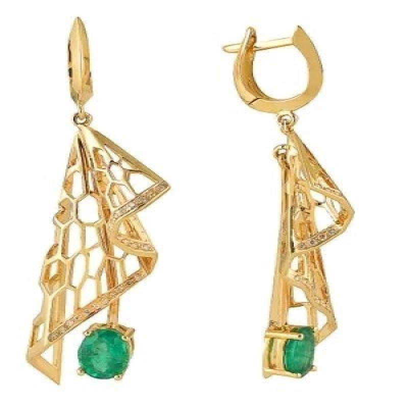 G.st. ЗЕРГЕРЛІК ЗАУЫТ ЗОЛОТЫЙ СТАНДАРТ Сырғалар Балет сары алтыннан жасалған, табиғи изумрудтар мен