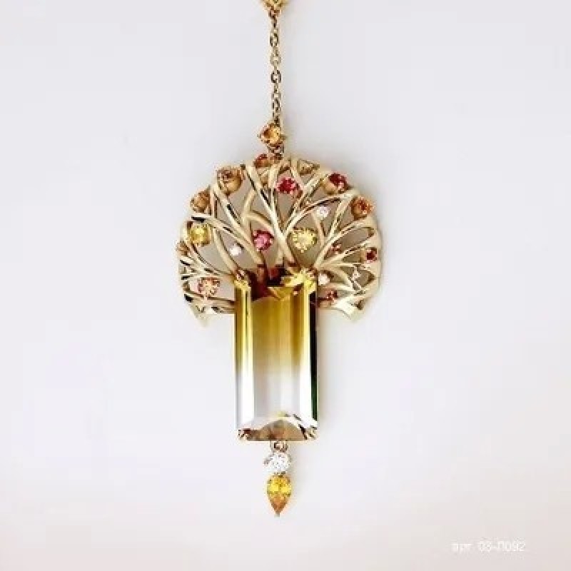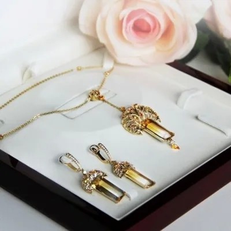 Орнату:8 Алмаз Кр 57 (200 400) 0.066 ct 3/5А;1 Алмаз Кр 57 (200 400) 0.100 ct 4/4А;20 Сапфир, түсі өңделген, 1.856 ct;1 Полихромды кварц 11.96 ct.
