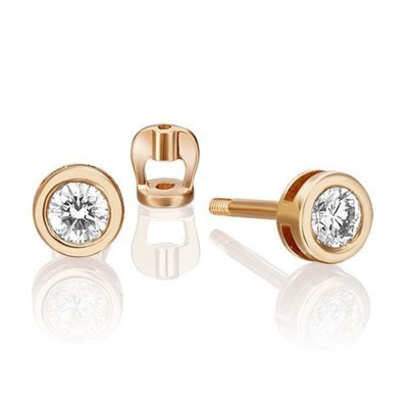 PLATINA Қызыл алтыннан жасалған сырғалар-пусеттер, 585 сынамасы, алмазбен
