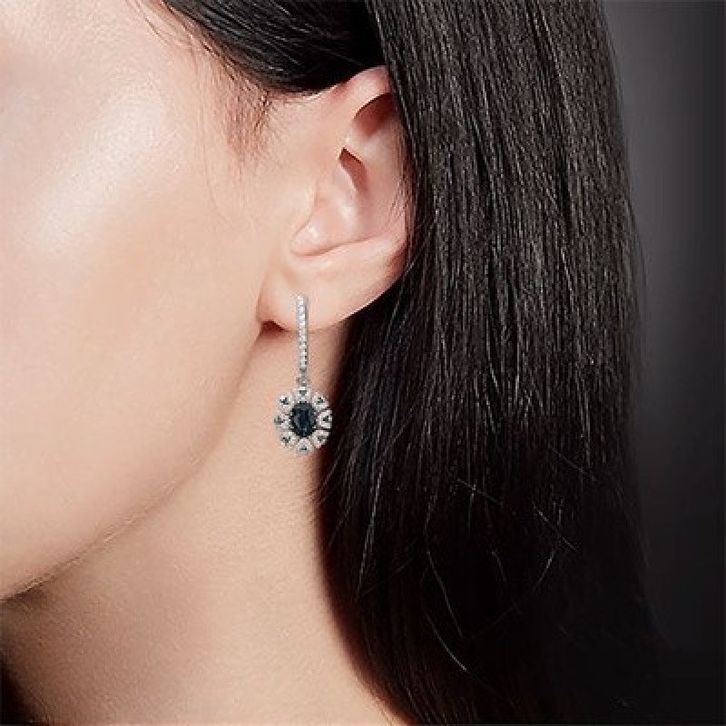 PLATINA Ақ алтыннан жасалған сырғалар, ағылшын ілмегімен, 585 сынамасы, сапфир мен алмаздармен