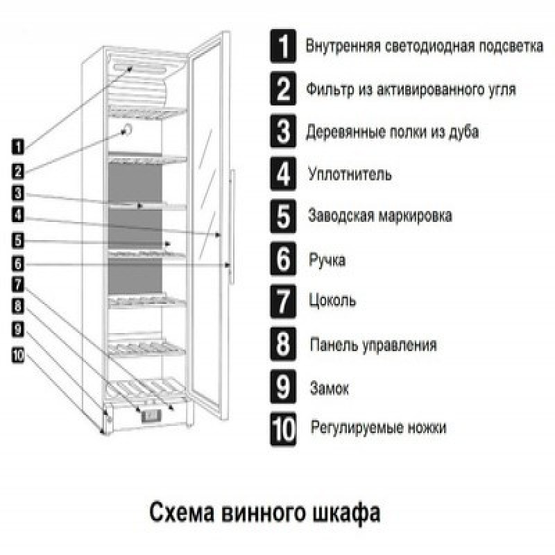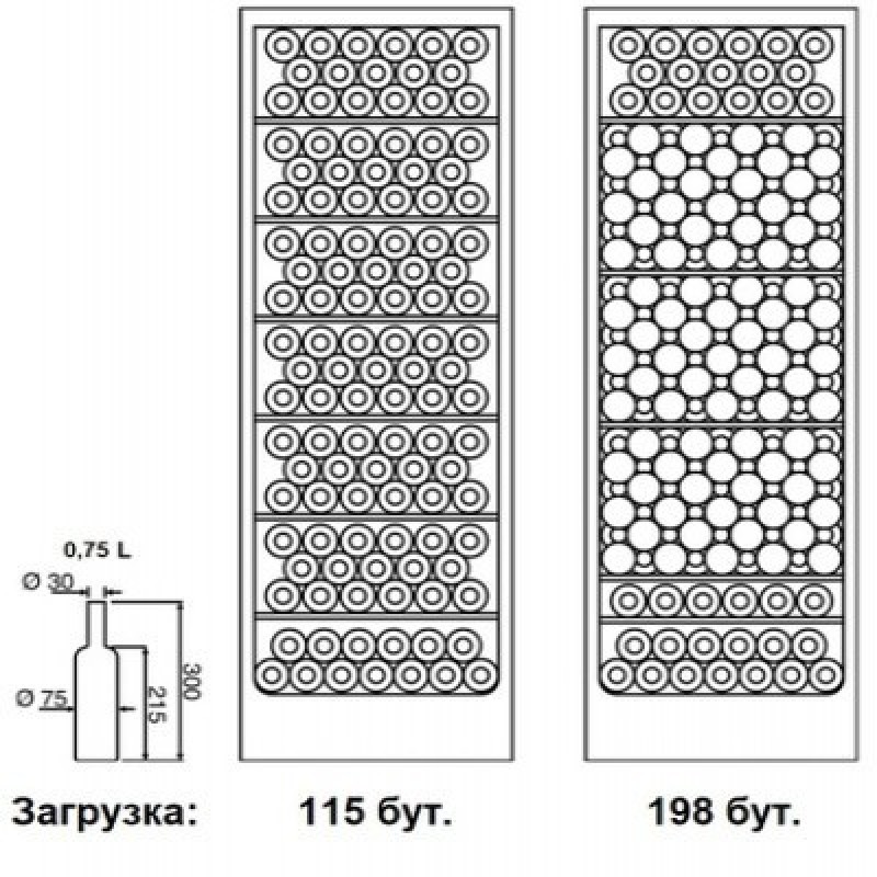Қиғаш. Цифрлық басқару панельдері аспаптың қорабында дисплеймен. Ақшыл ішкі жарықтандыру – жоғары сапалы жарықтандыру үшін ұзын шам, қыздырмайды: жұмыс істеудің екі режимі (тұрақты жарық, есікті ашқанда жарық). Температураның өзгергенін көрсететін дыбыстық және көрнекі индикатор. Есіктерде ультрафиолет сәулесінен қорғаумен шыныдан жасалған қос шыны пакеті. Табиғи желдету үшін көміртекті сүзгілер. Есіктердің ашылу бұрышы: 100°. Хладагент R600a. Электр қуаты сымдарының ұзындығы: 3х2,2 м. Таза/жалпы салмақ: 306/316 кг.