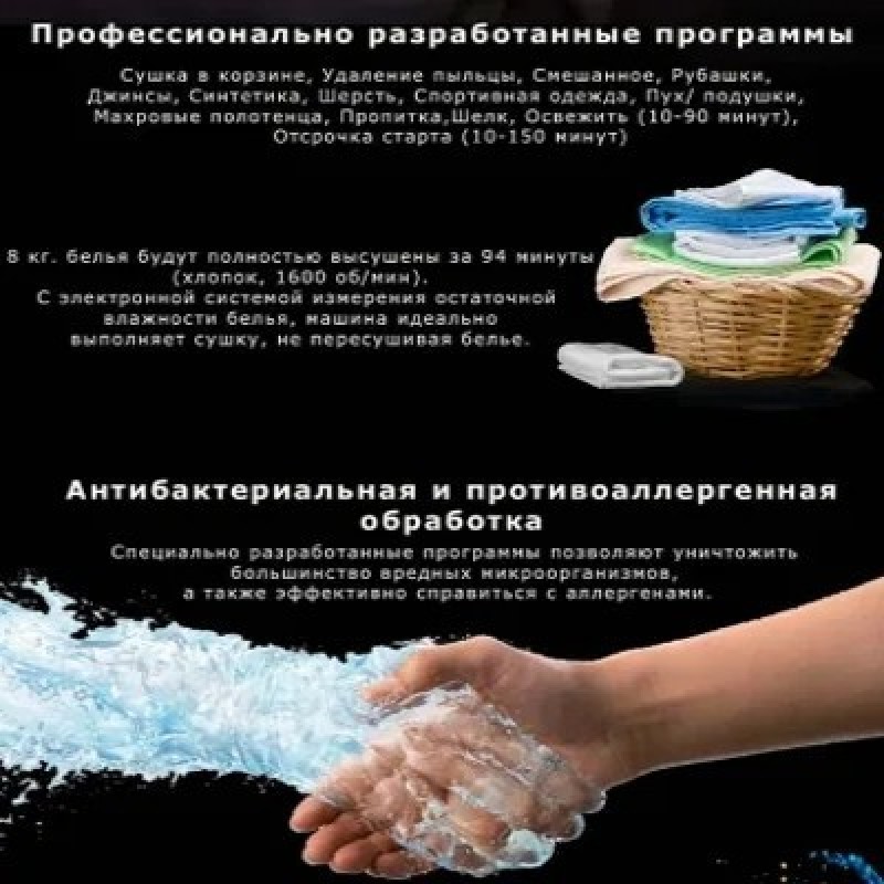 Сипаттамалар: Конденсациялық кептіргіш машина, Heat Pump технологиясы бар Жүктеу 1-8 кг Стационарлы орнату/колоннаға орнатуға болады Люктің ашылу жағын солға/оңға өзгерту мүмкіндігі Люктің ашылу жағын өзгерту мүмкіндігі Құрылғының өлшемдері (Е х Б х Т): 595 х 850 х 640 мм Швейцарияда жасалған