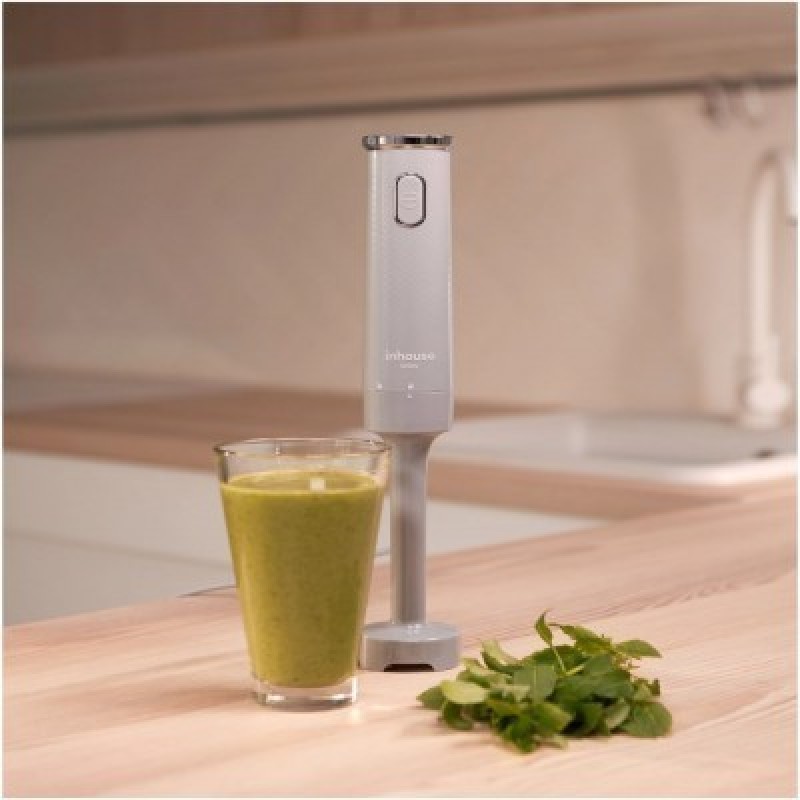 Inhouse IHB50001G блендері эргономикалық конструкциясымен өте жеңіл пайдалануға арналған. Үлкен батырма корпуста ең ыңғайлы жерде орналасқан, ал тұтқасы текстуралы, сырғанамайтын қабатпен жабдықталған.