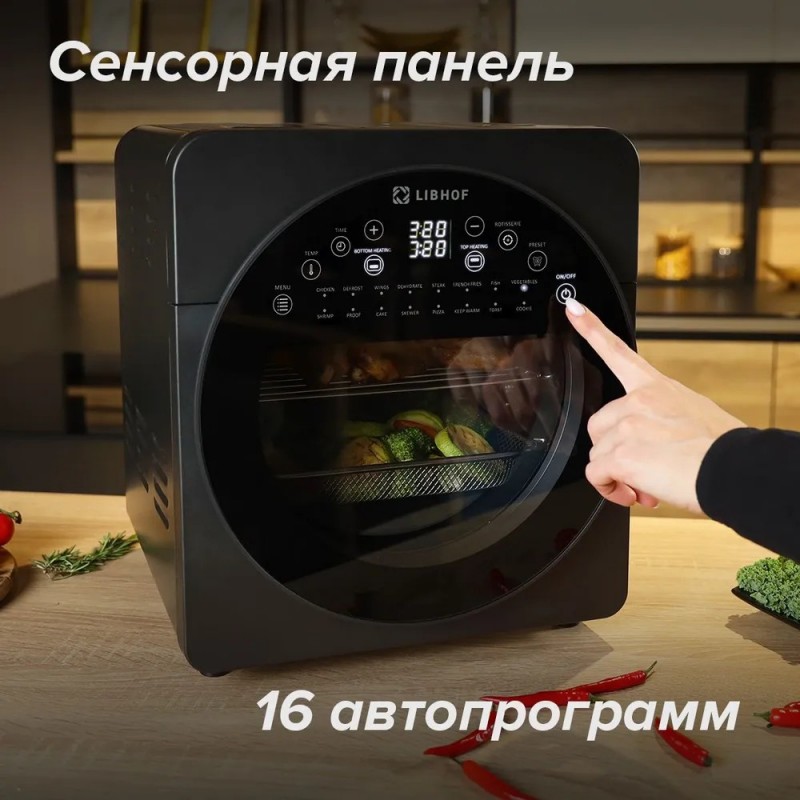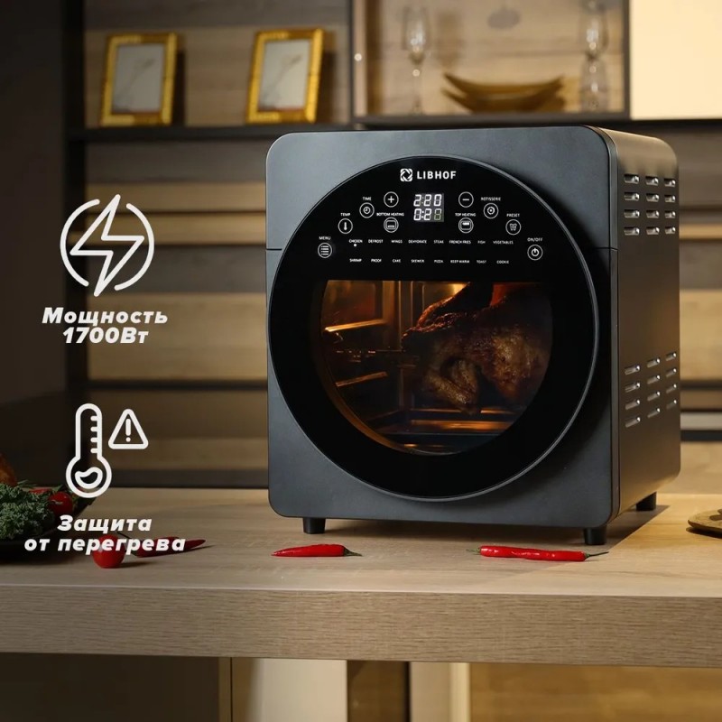 Libhof AFN-317 аэрогрильі, көлемі 15 л / 1700 Вт / 16 пісіру бағдарламасы, 90 минутқа дейін таймер,