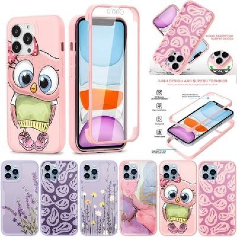 360 градус толық соққыға төзімді Сова Гүл Телефон қаптамасы iPhone 13 12 11 Pro Max Xiaomi 1