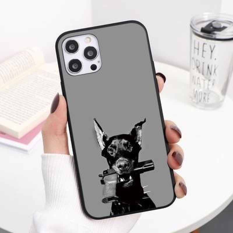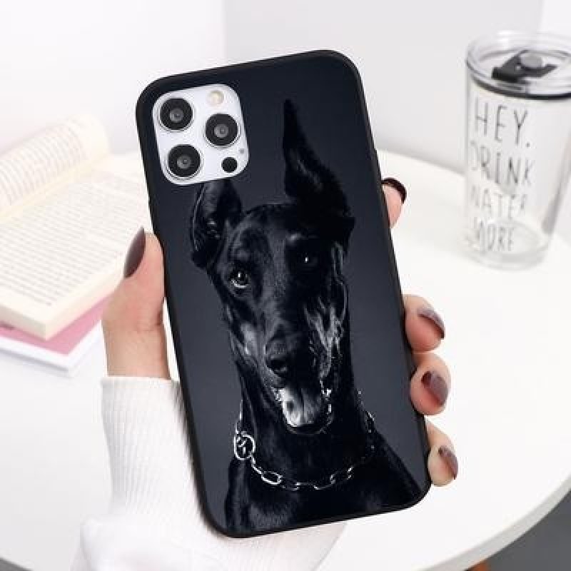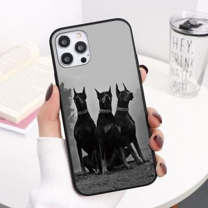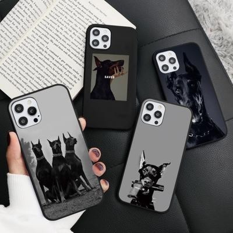 Доберман Полицейская собака Силиконды жұмсақ қара телефон қаптамасы iPhone 13 12 11 Pro Max XS үшін